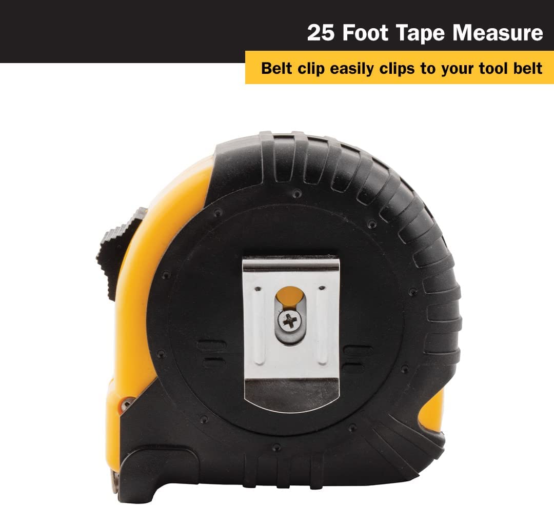 - 25' long measuring tape with quick-read and standard markings